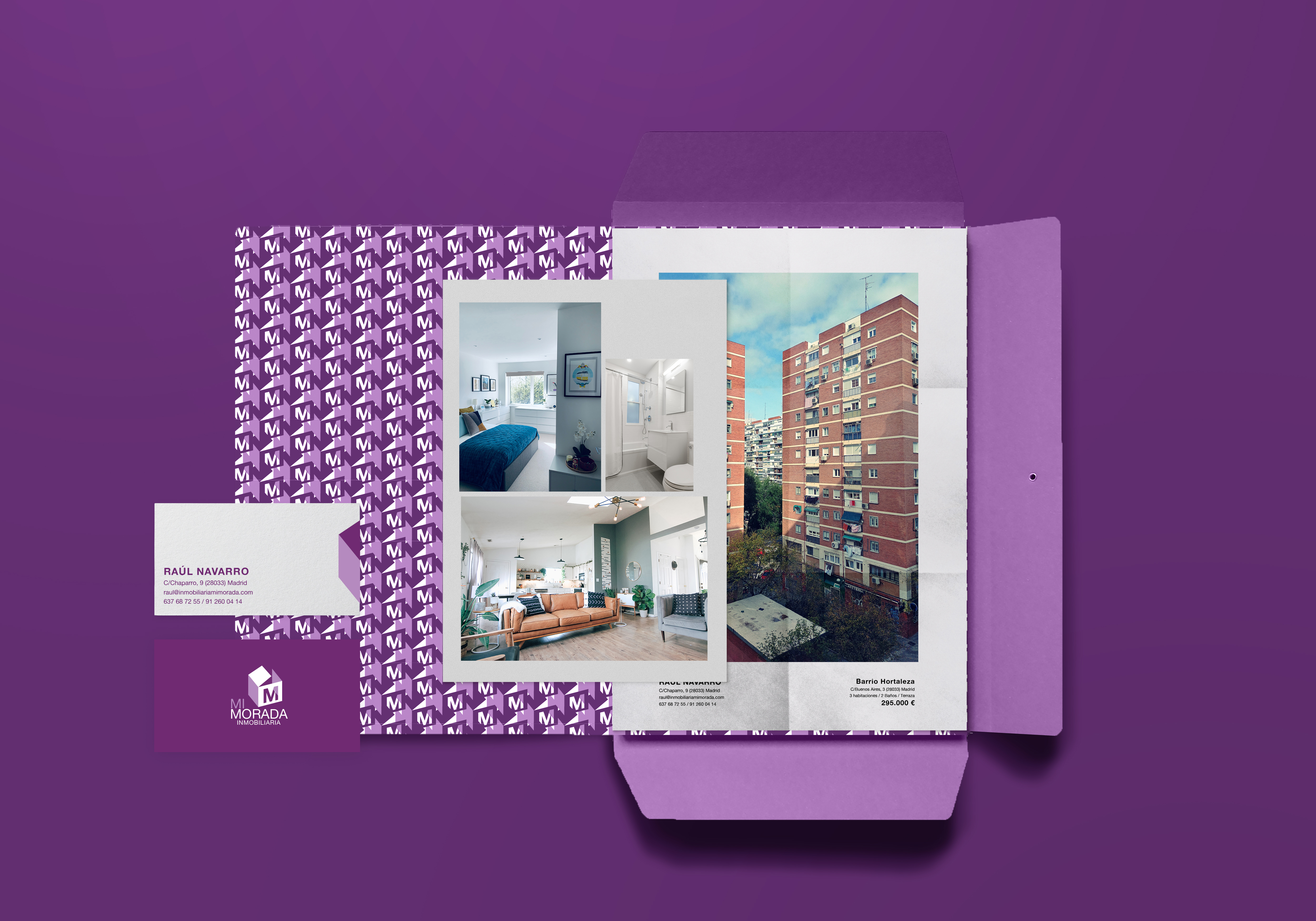 Mi morada es una inmobiliaria del barrio madrileño de Hortaleza que está enfocada en un público joven que busca alquilar o comprar su primera vivienda. Conscientes del complejo mercado inmobiliario se posicionan como una alternativa ética.El proyecto tenía un espíritu y una actitud muy claros, solo necesitaban una identidad visual para transmitirlos y en ese sentido tuve la suerte de proporcionarla.