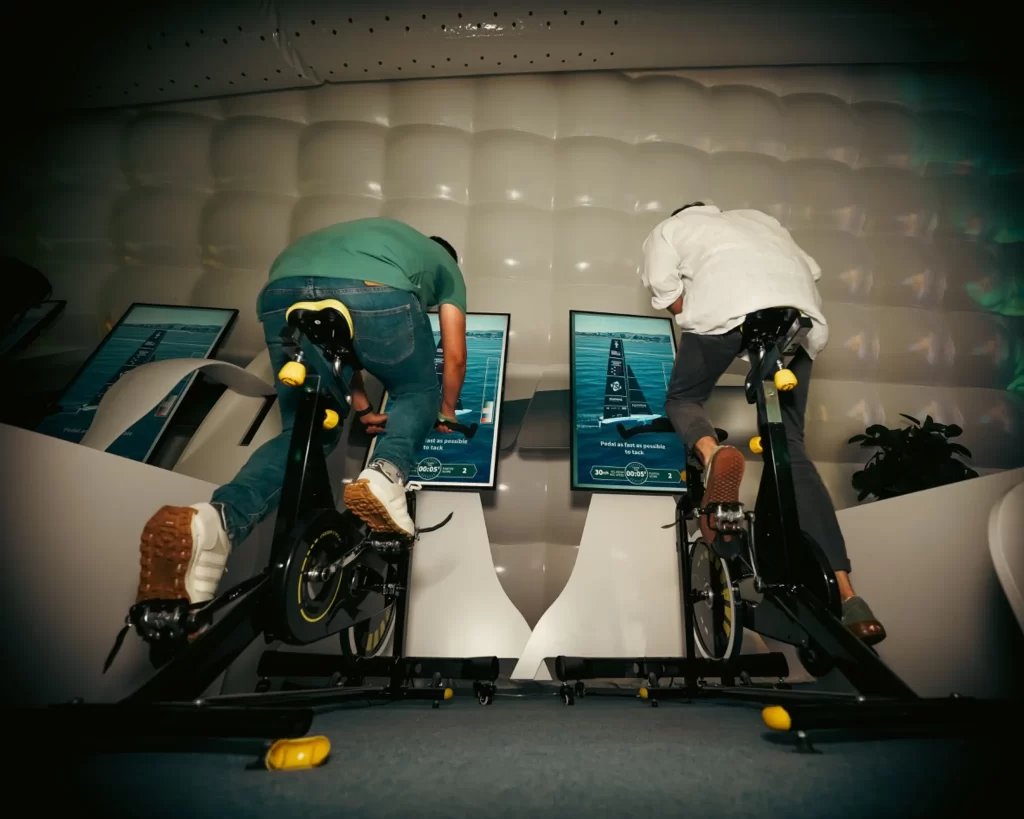 Junto a Cubensis, colaboré en el desarrollo de la experiencia interactiva The Seekers Boat, creada por Komodo y San Miguel para apoyar al equipo American Magic. Mi trabajo se centró en el desarrollo de gráficos 2D y 3D para el juego de los cyclors, un reto en el que los visitantes pedaleaban para generar la energía necesaria en una regata. Además, diseñé la interfaz visual de un quizz de preguntas y respuestas que ponía a prueba el conocimiento sobre la competición, integrando gráficos dinámicos que hacían la experiencia más fluida y atractiva.